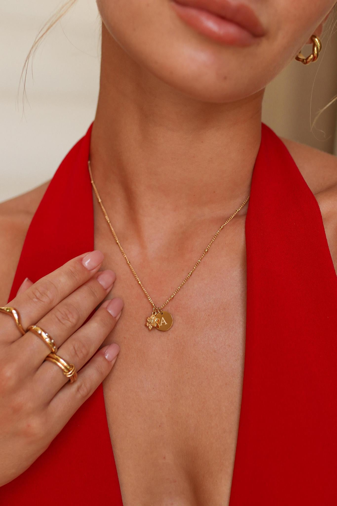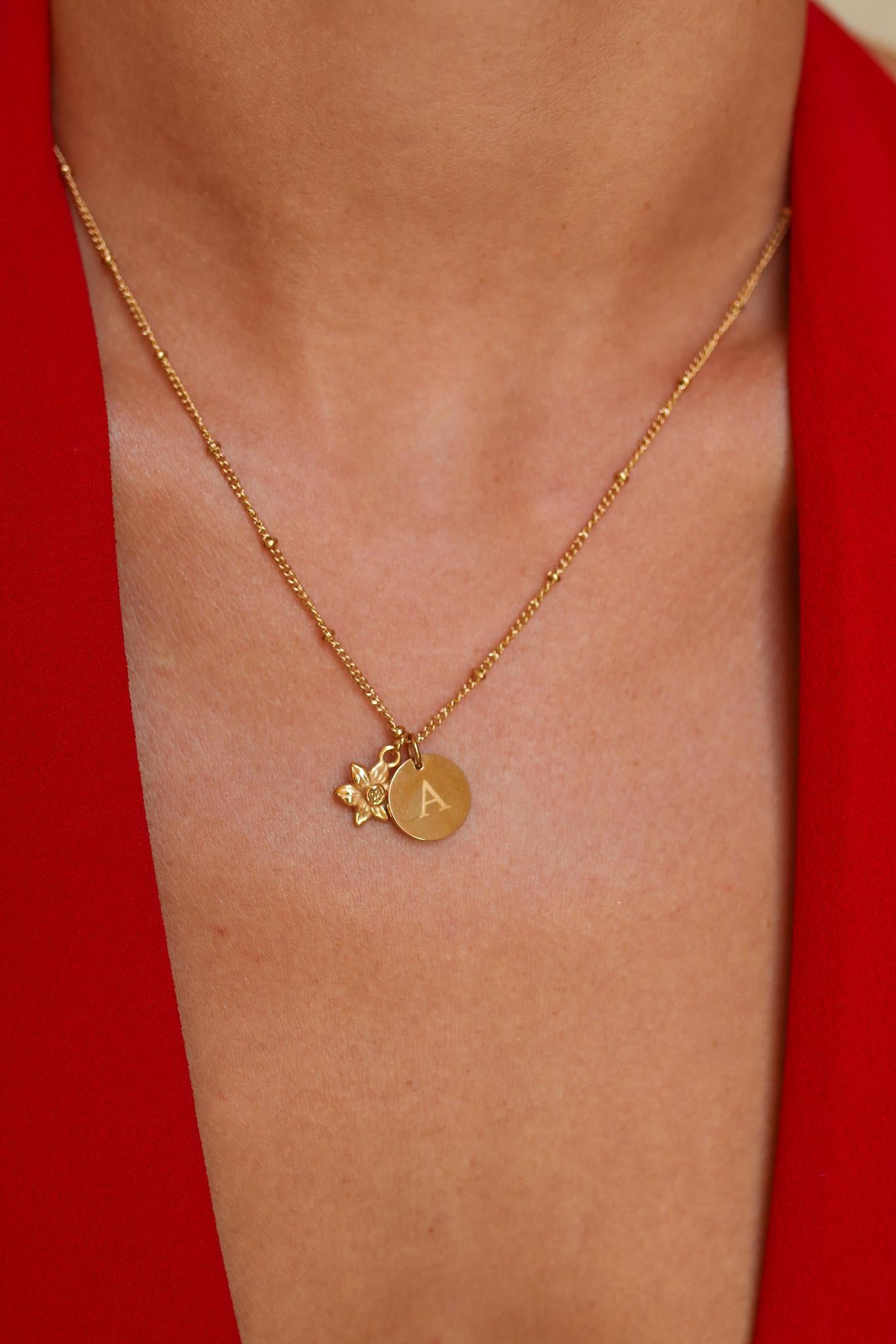 Yuki - Stainless Steel Birth Flower Monogram Necklace