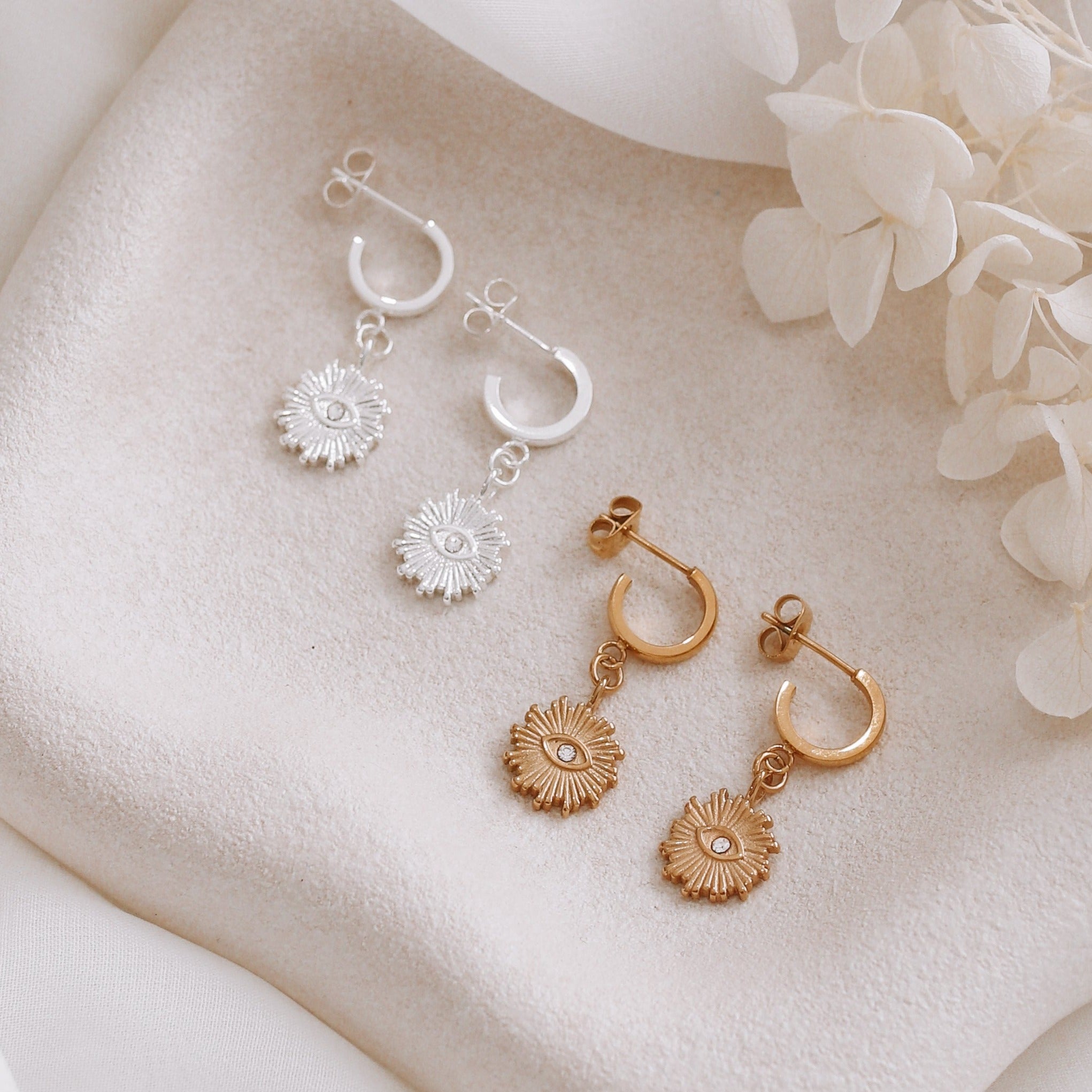 Chiara - Gold or Silver Evil Eye Earrings