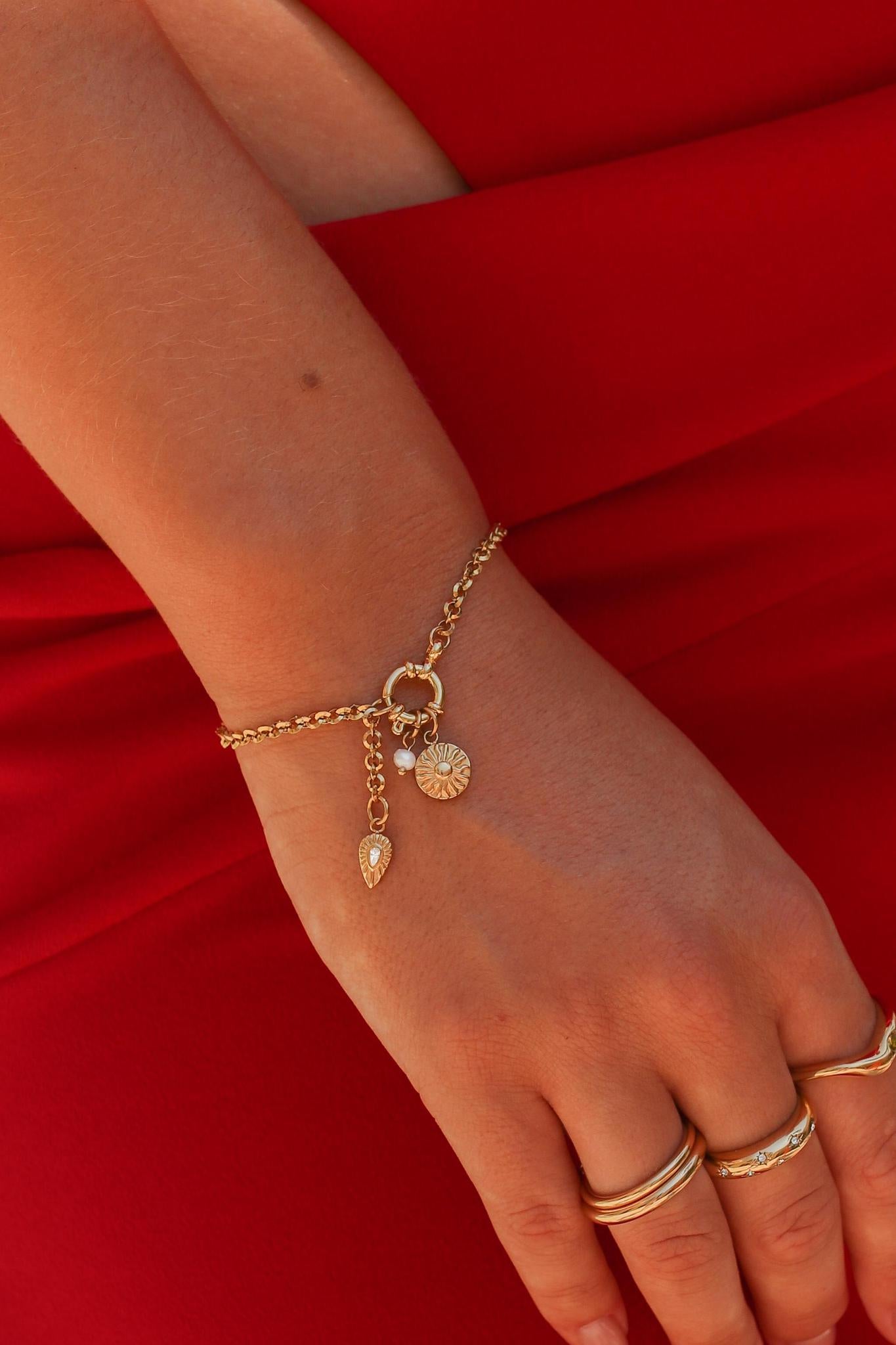 - Charm measurements: Sun 9mm, teardrop 11mmx5.5mm, pearl 3mm